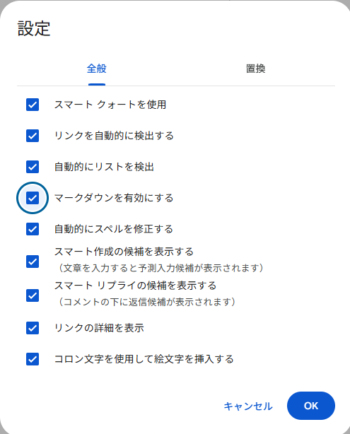 そのため、Googleドキュメントの「設定」から「マークダウンを有効にする」をONにし、さらに「編集」メニューから「マークダウンで貼り付け」を選択する必要があります。