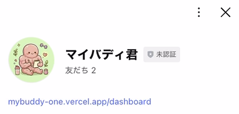 MyBuddyのLINE公式アカウントを友だち追加するだけ。アプリのインストールは不要です。