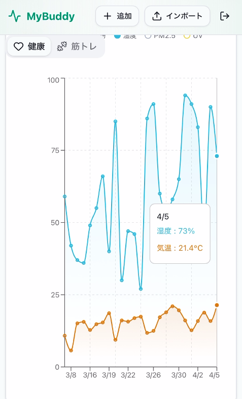 - 自分の体調が悪くなるパターンがある気がする。でもデータがないから対策できない